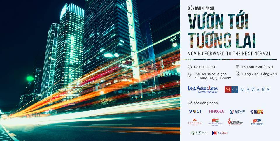 HR Forum “Moving forward to the next normal” is co-organized by Le & Associates, Mazars Vietnam, VCCI, HAWEE and Business Chambers. The event aims to motivate and inspire CEOs, HRDs and senior managers to cope with the uncertain future and implement their corporate strategies more successfully. Our distinguished speakers, panelists and moderators will present and discuss in 4 exciting sessions in English and Vietnamese languages with simultaneous translation.