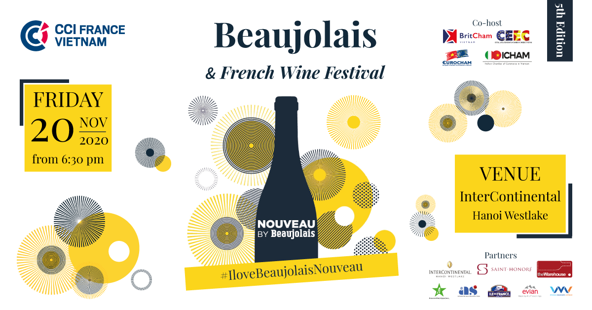 This year the CCIFV Hanoi is pleased to announce its 2020 Beaujolais Nouveau Celebration on Friday November 20th, from 6:30pm at the Intercontinental Hanoi Westlake.