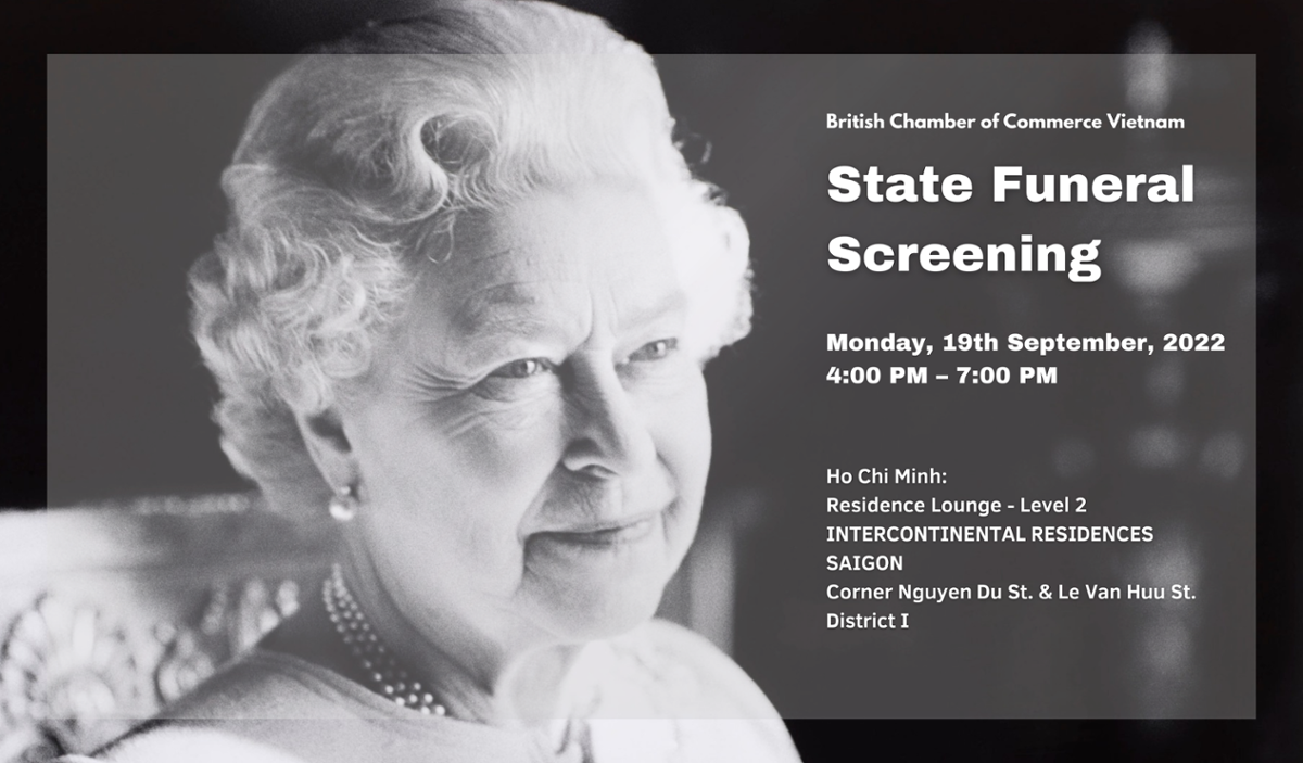 We have arranged a special screening of the State Funeral at Oakwood Residence in Ha Noi and Intercontinential Residences Saigon in Ho Chi Minh City, we would like to invite you to join the BritCham team as we say our Final Farewell.