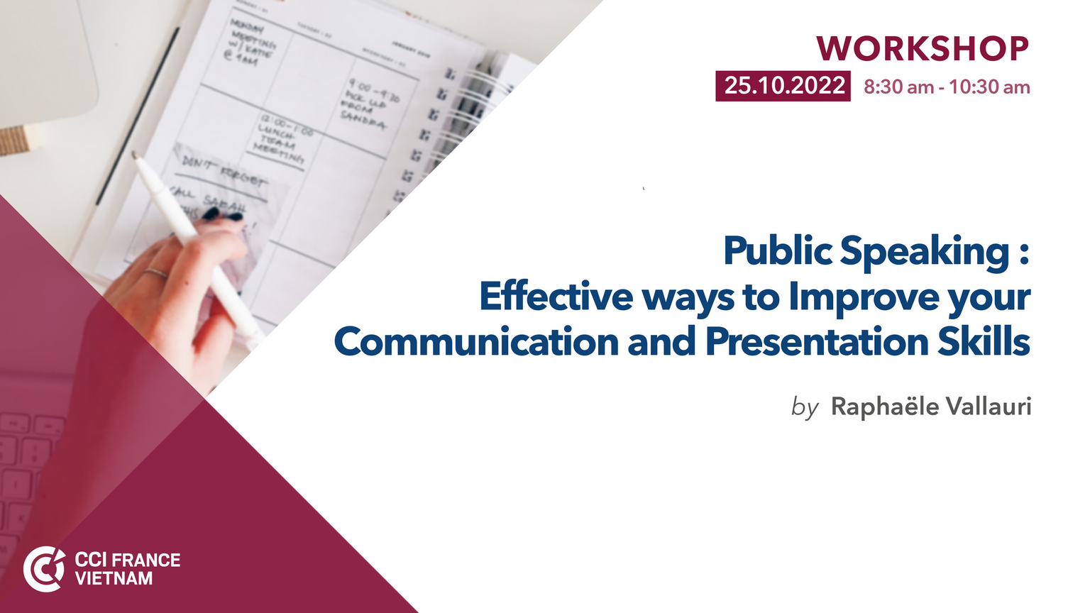 For its forthcoming workshop, the CCIFV Hanoi team has invited Mrs. Raphaële Vallauri, a coach, author, speaker, and trainer. Raphaële is an expert in the management of emotions, fears, and anxiety. She is also the Co-author of a best seller: Transforming your life.