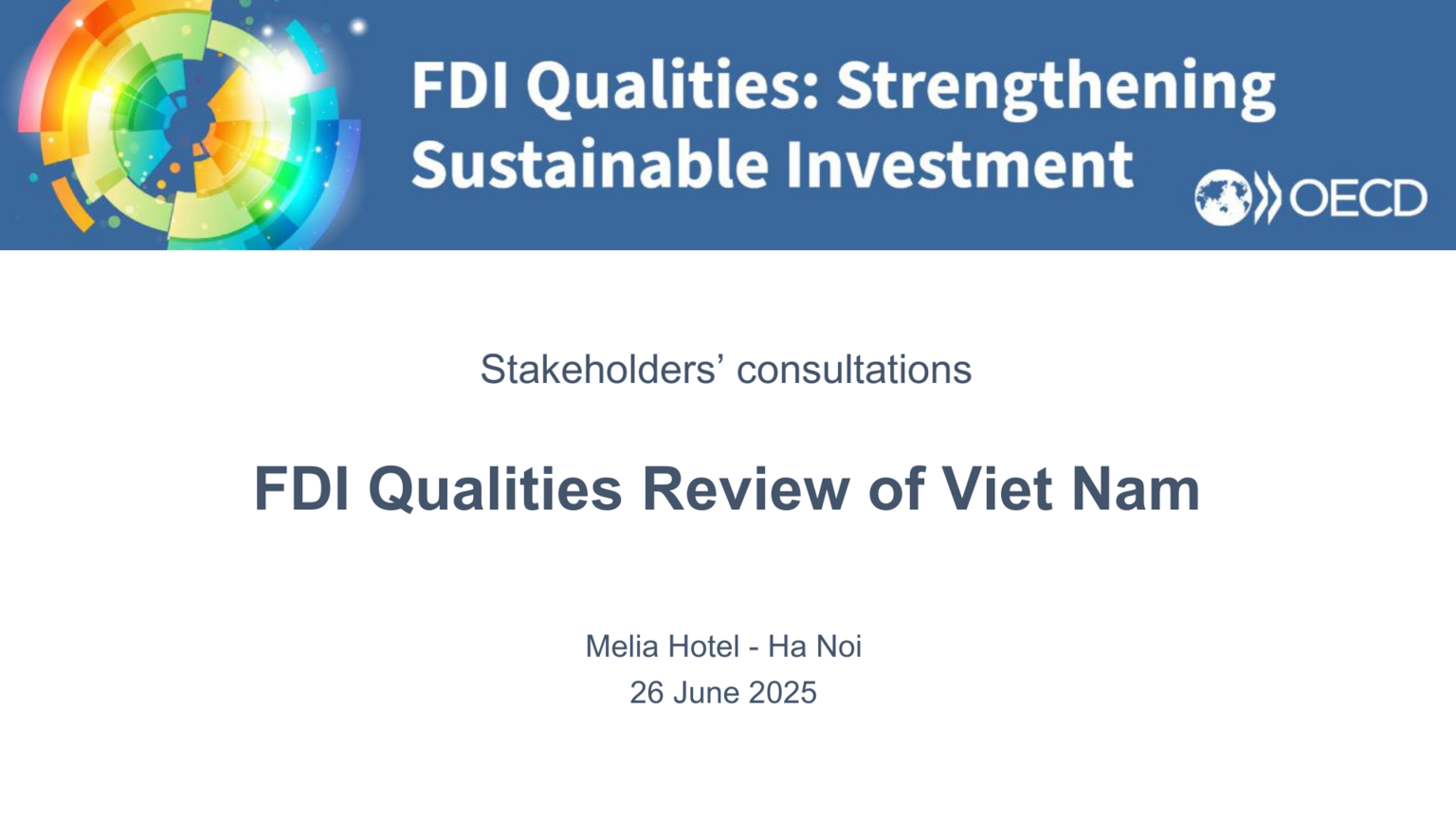- 26 June 2025 | 14:00–16:30 : OECD FDI Qualities Review of Viet Nam: Stakeholder Consultations : Multi-stakeholder session with representatives from international institutions, the private sector, and civil society.