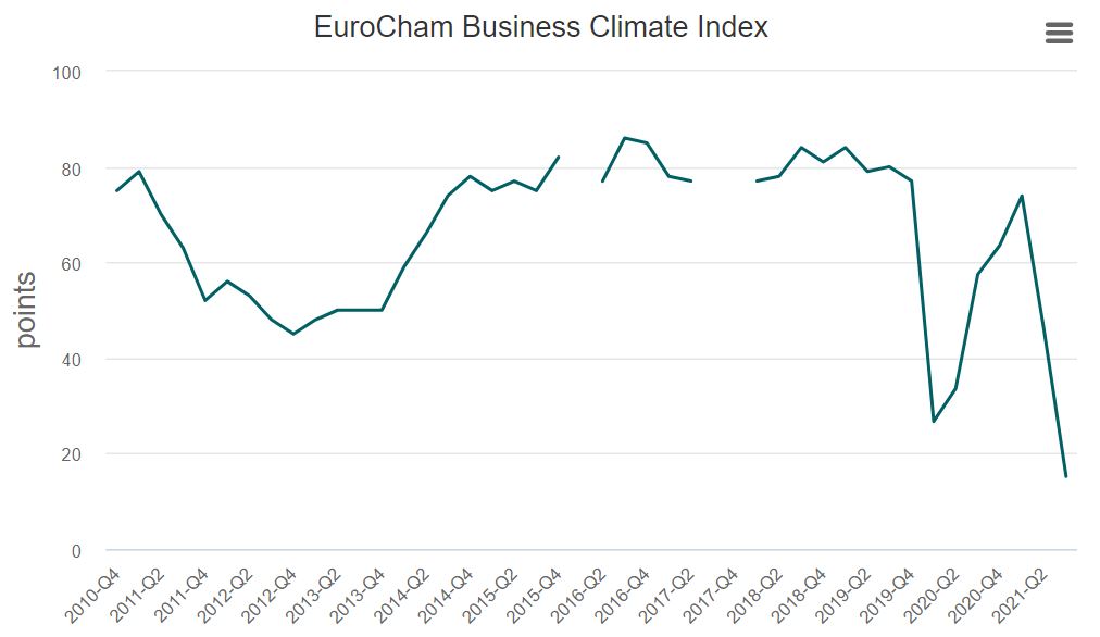 The EuroCham Business Climate Index is now at its lowest in more than a decade.
