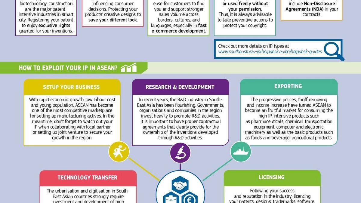 In recent years, South-East Asia has been seen as the fruitful region for smart cities development with significant increase of urban population, high digital connectivity, rapid economy growth and numbers of incentive policies from governments. This infographic will help you to learn more about how to protect and exploit your IP rights in Smart Cities Business in ASEAN.