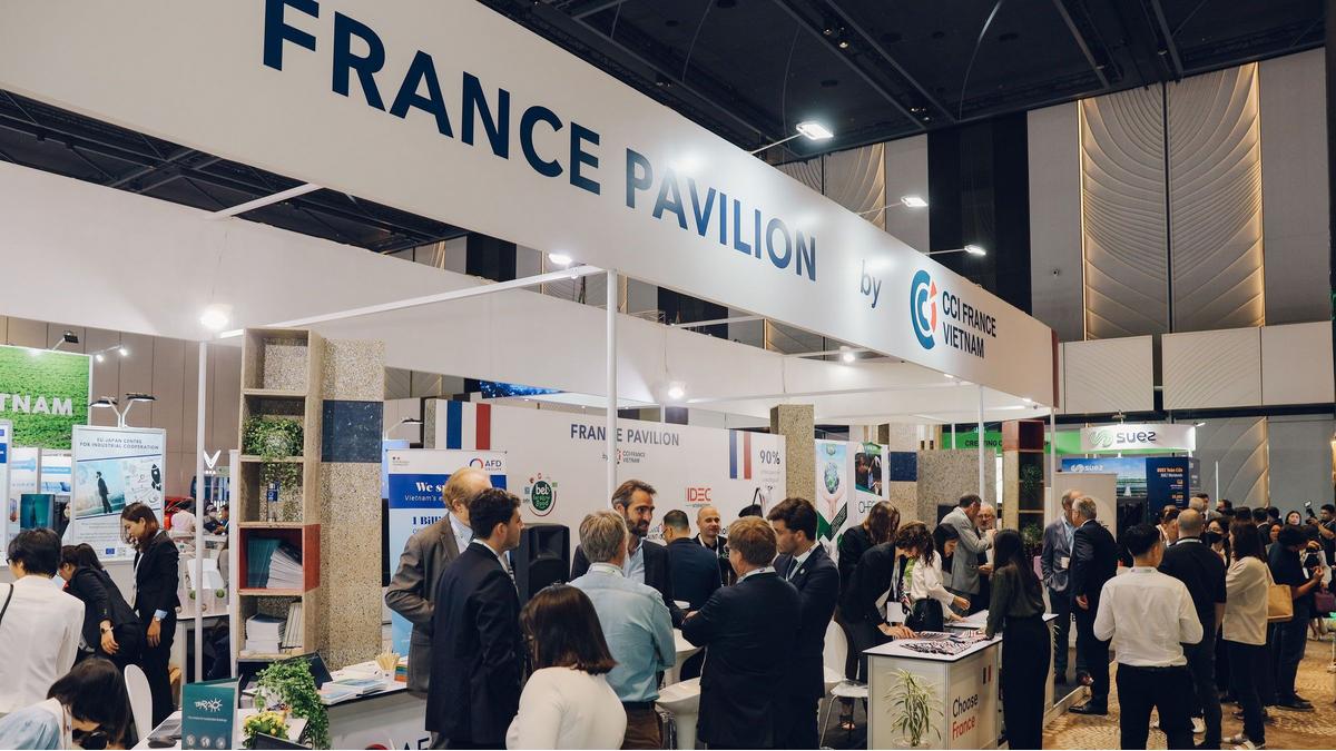 On Monday, November 28, CCIFV was thrilled to open its French Pavilion within the Green Economy Forum & Exhibition in the presence of Mr. Nicolas Warnery, Ambassador of France, Mrs. Emmanuelle Pavillon-Grosser, Consul General of France, Mr. Thibaut Giroux, President of the CCIFV and Mr. Adam Koulaksezian, Director of the CCIFV and more than 50 French companies currently investing in Vietnam.