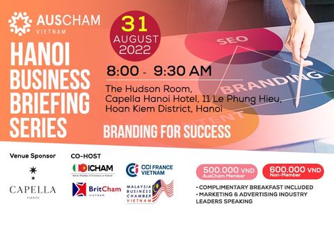 In Hanoi August Business Briefing Breakfast - Branding for Success, AusCham will be talking to a panel of industry experts from digital agencies, branding companies, a sales strategist and marketing consulting services who will discuss the importance of creating a strong brand, insights into what makes a successful brand as well as some insider tips and tricks for Branding for Success.