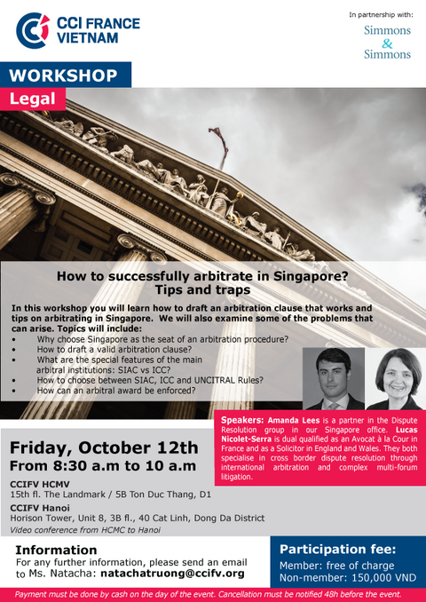 HANOI & HCMC: workshop"How to successfully arbitrate in Singapore"