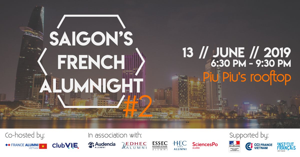 Co-hosted by France Alumni Vietnam | Mạng lưới Cựu du học sinh Trực Thuộc Đsq Pháp & Club VIE Vietnam in association with the local Alumni Chapters of Audencia, EDHEC, ESSEC, HEC, Sciences Po & more, this networking event is also supported by Tổng Lãnh sự quán Pháp / Consulat général de France à Ho Chi Minh-Ville, CCIFV & Viện Pháp tại TP Hồ Chí Minh