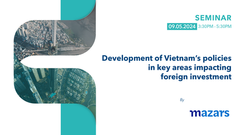 Rejoignez-nous pour une session enrichissante sur "Le développement des politiques du Vietnam dans les domaines clés impactant l'investissement étranger", où nous explorerons les dernières mises à jour sur les permis de travail, les visas, la protection des données personnelles, l'énergie renouvelable, l'enregistrement des investissements, la taxe minimale mondiale et les procédures douanières. Cet événement sera co-présenté par Monsieur Minh Nguyen, Associé/Responsable des Services Conseils chez Mazars au Vietnam, Vice-président de l'EuroCham et Vice-Président du Comité n°1 sur la Réforme des Politiques du Conseil Consultatif du Premier Ministre sur la Réforme des Procédures Administratives (ACAPR), ainsi que Monsieur Christophe Cougnaud, avocat et associé chez Mazars, qui apportera son expertise sur les aspects légaux des sujets traités.