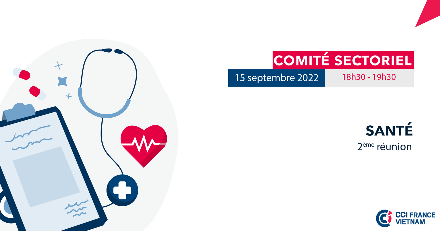 La CCIFV est ravie d'accueillir la 2ème réunion de travail pour la création du Comité Sectoriel Santé – French Healthcare Vietnam, le 15 septembre 2022 à 18h30 :