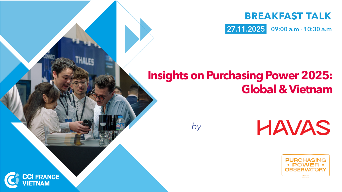 Havas Vietnam, membre du groupe Havas, vous invite à un petit-déjeuner exclusif présentant les perspetives du "Purchasing Powers Observatory", une étude internationale menée par Havas Commerce. Basée sur les réponses de plus de 9 000 consommateurs dans 12 pays, dont 1 001 au Vietnam, cette recherche explore l’évolution des comportements d’achat sous pression économique.