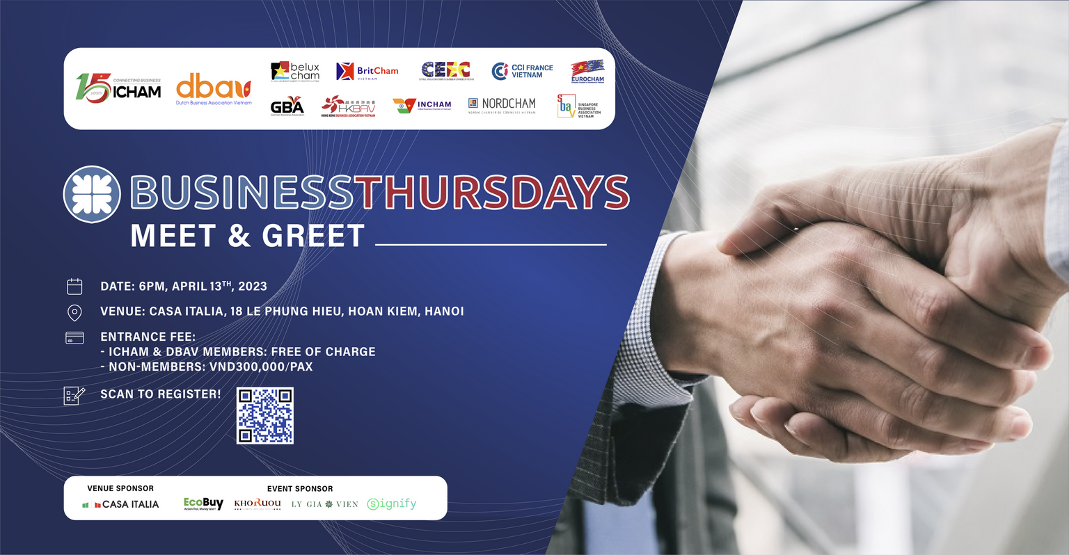 ? Co-organized by the Italian Chamber of Commerce in Vietnam (ICHAM) and the Dutch Business Association in Vietnam (DBAV), this edition of Business Thursday welcomes all individuals looking for an intriguing conversation with like-minded professionals, expanding their network with the ever-growing business community in Hanoi.