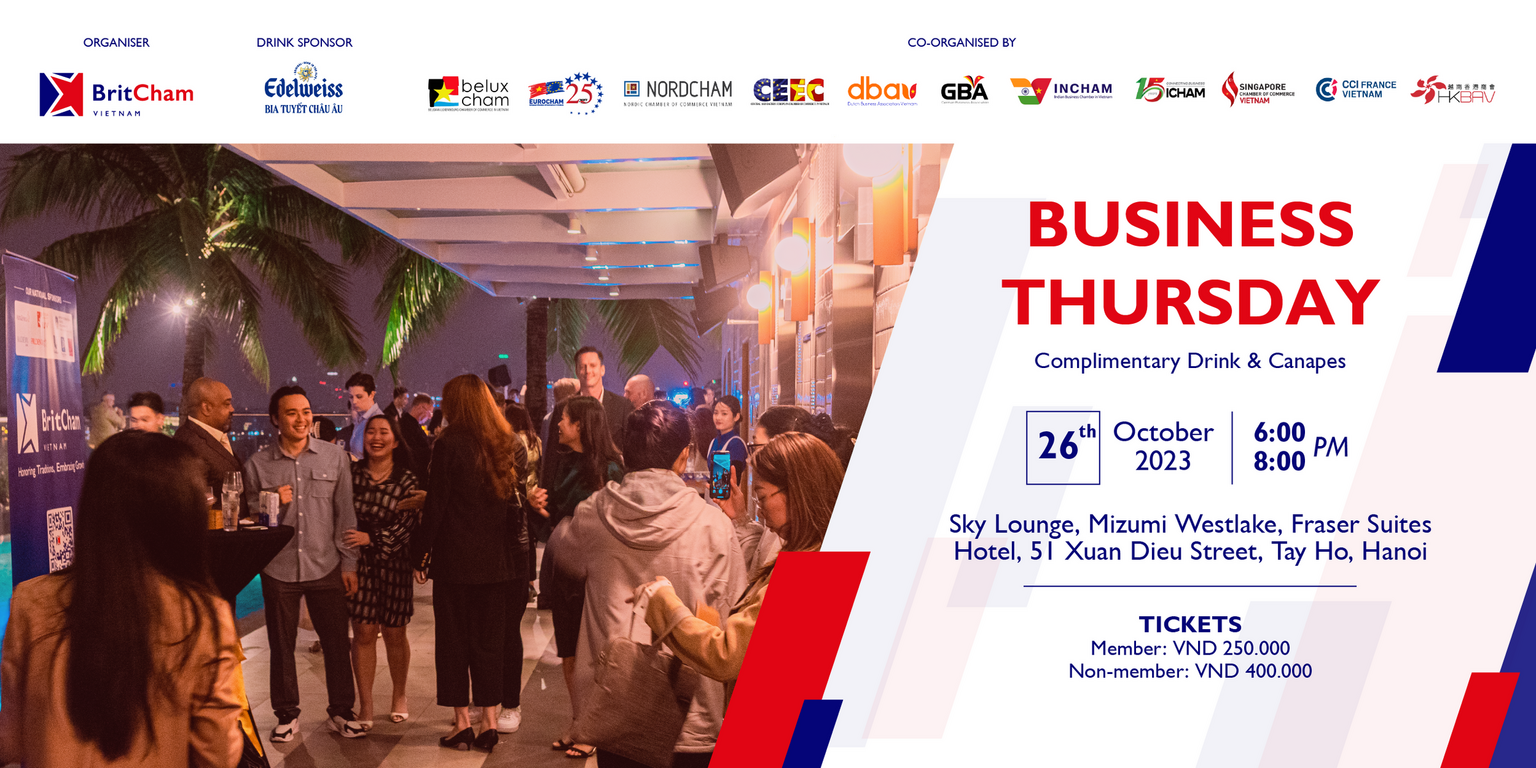 The British Chamber of Commerce Vietnam (BritCham Vietnam) is delighted to invite you to our upcoming networking event “Business Thursday”!