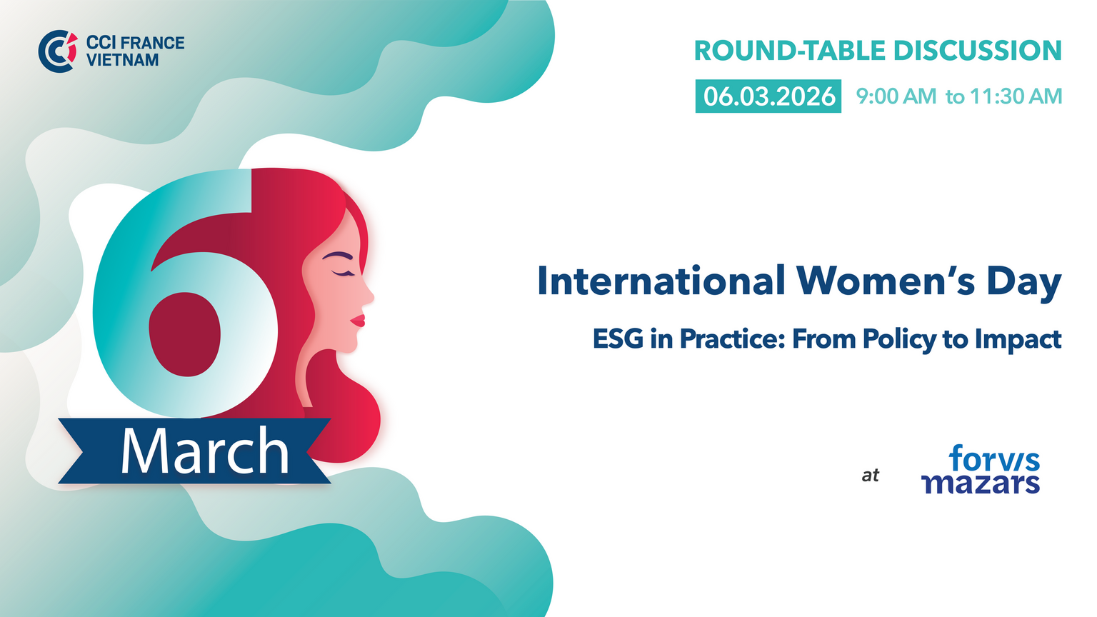 A l’occasion de la Journée Internationale des Droits de la Femme, la CCIFV a le plaisir de vous inviter à une table ronde de haut niveau intitulée « L’ESG en pratique : des politiques à l’impact ».