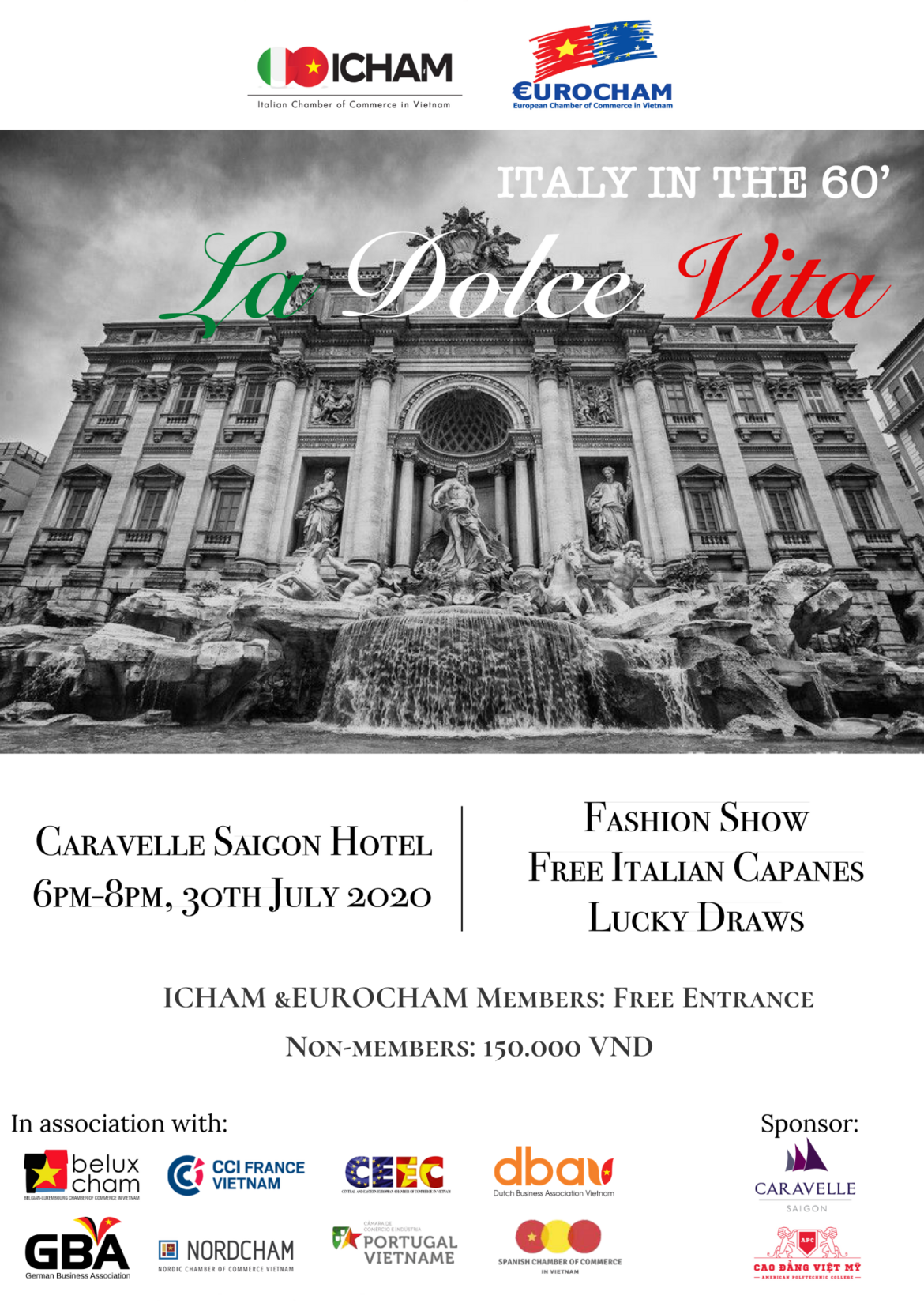 On the occasion of the 100th anniversary of the birth of the great Italian director Federico Fellini, ICHAM is delighted to lead a new edition of the European Night with the theme “Italy in the 60’- LA DOLCE VITA”.