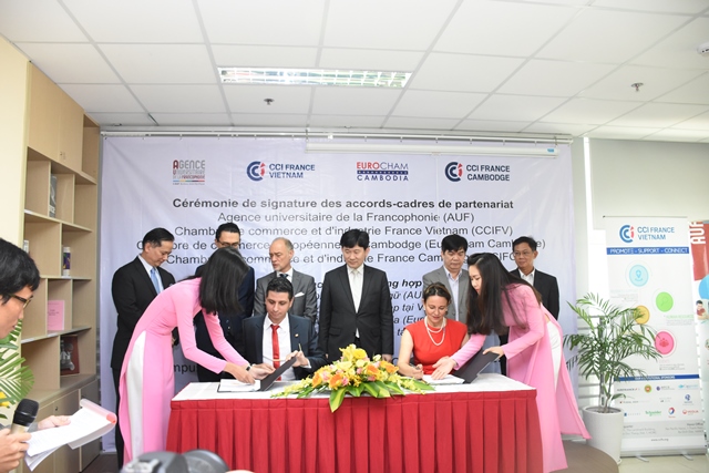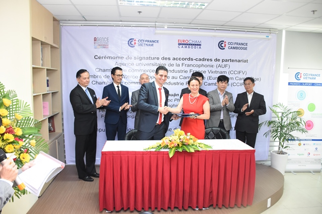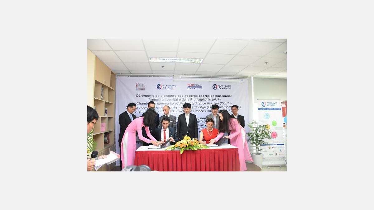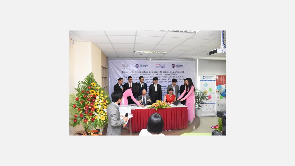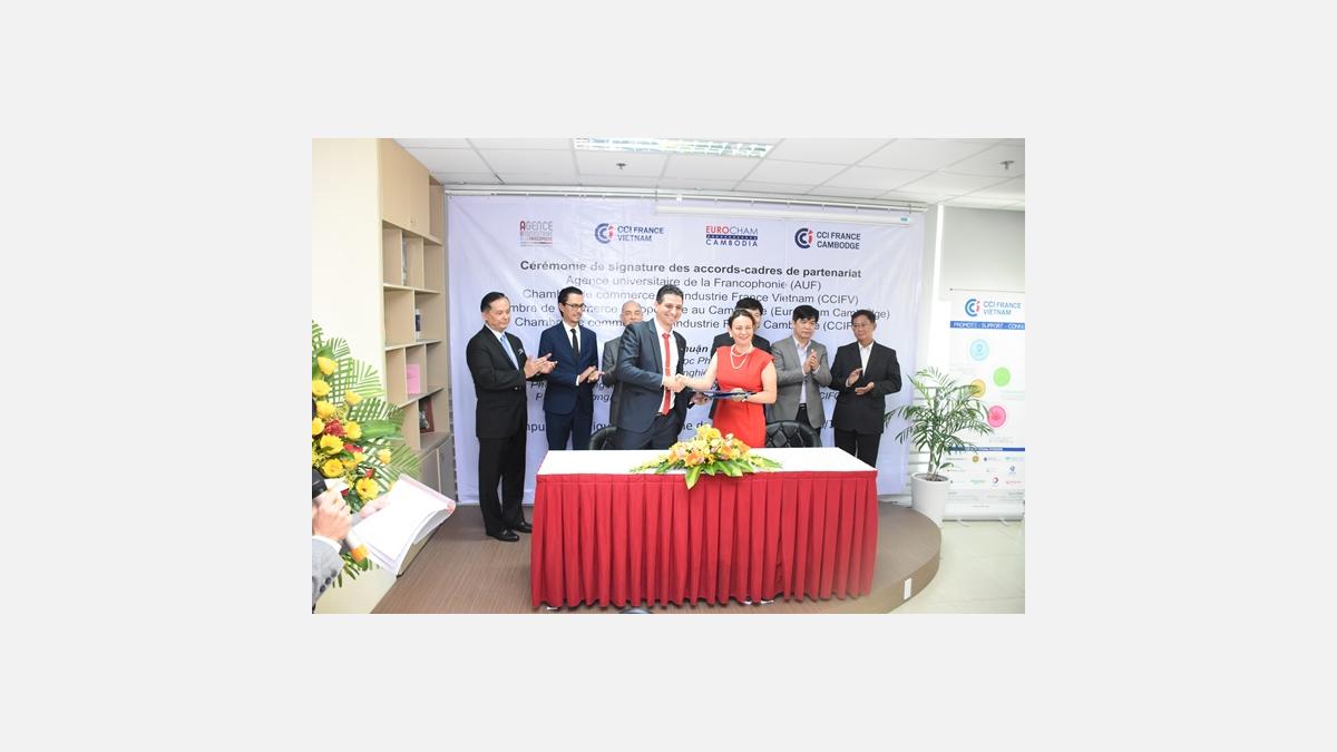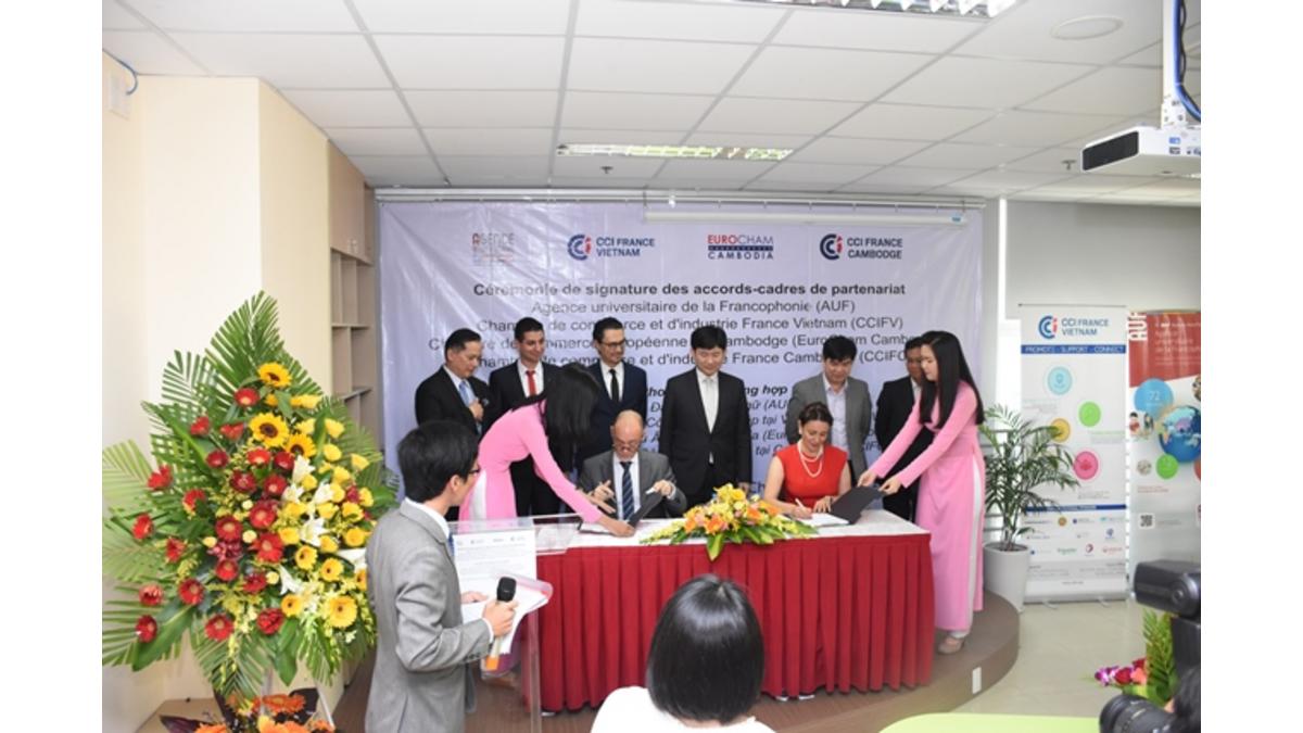 Mardi, lors de la signature des accords-cadres, L'AUF et la CCIFV ont déclaré leur volonté de consolider et de renforcer leur action de coopération commune en matière de développement des partenariats entre les établissements d’enseignement supérieur et de recherche et le monde économique.
