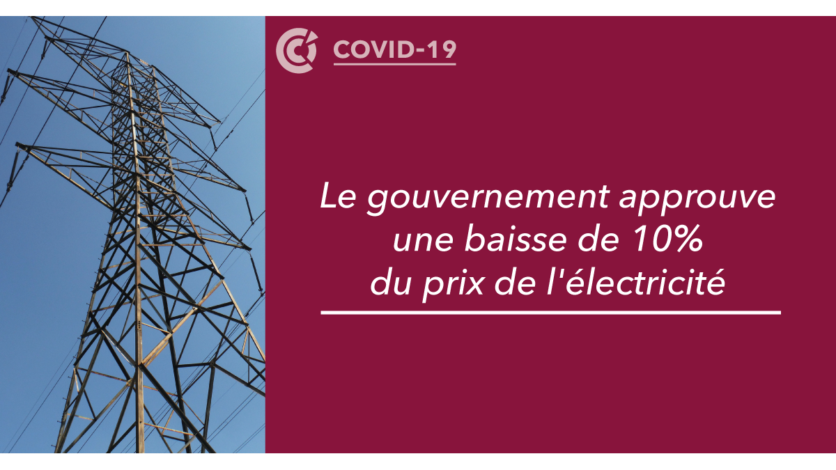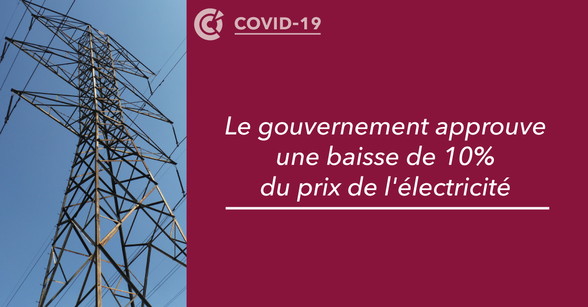 [COVID-19] Le gouvernement approuve une baisse de 10% du prix de l'électricité