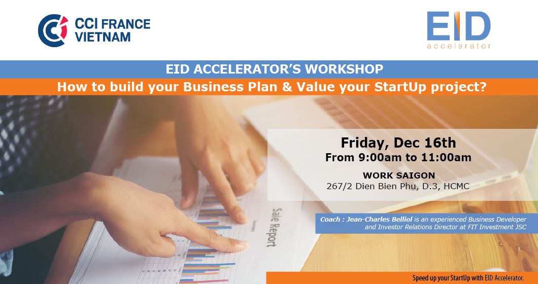 As part of EID Accelerator, CCIFV launches a set of workshops toward entrepreneurs. In order to support entrepreneurs in their business creation, this first session will focus on “How to build your business plan and value your startup project ?”