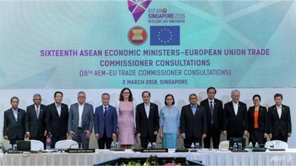Les ministres de l'Économie des pays membres de l'ASEAN et la commissaire de l'Union européenne pour le commerce Cecilia Malmström, sont parvenus le 2 mars à un consensus sur la ratification officielle de l'accord de libre-échange (FTA) UE - ASEAN d'ici la fin de 2018.