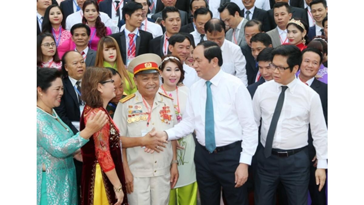 Le président Trân Dai Quang a fait l’éloge des contributions des entrepreneurs au développement socio-économique du pays tout en leur demandant de continuer à mettre en œuvre les résolutions et les directives du Parti et de l’État sur l’intégration internationale. Il a aussi plaidé pour un contingent d'entrepreneurs performants et patriotiques ayant un haut sens des responsabilités sociales.