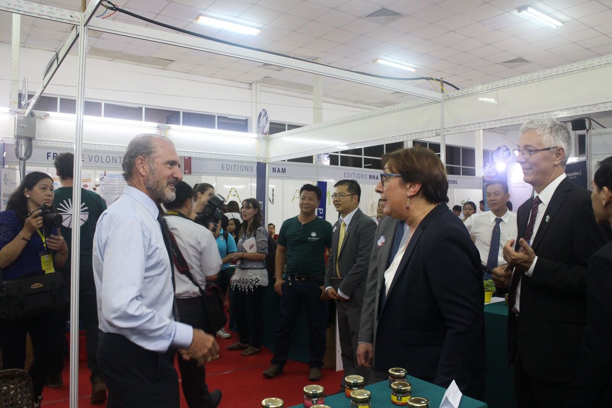 Enfin, en marge des Assises de la Coopération Décentralisée France-Vietnam, Mme Martine Pinville - Secrétaire d’Etat chargée du commerce, de l’artisanat, de la consommation et de l’économie sociale et solidaire ainsi que l'Ambassadeur de France au Vietnam, M. Bertrand Lortholary ont eu l’opportunité de visiter un verger pilote et l'usine des Vergers Du Mékong, le 16 Septembre 2016. Depuis leur création, Les Vergers Du Mékong ont toujours fait un choix clair en faveur d'un développement durable à long terme. Ils travaillent depuis 2000 avec les producteurs locaux au Vietnam pour produire les meilleurs cafés, thes, jus de fruits et miels
