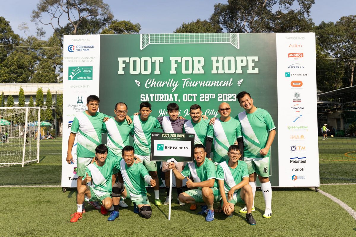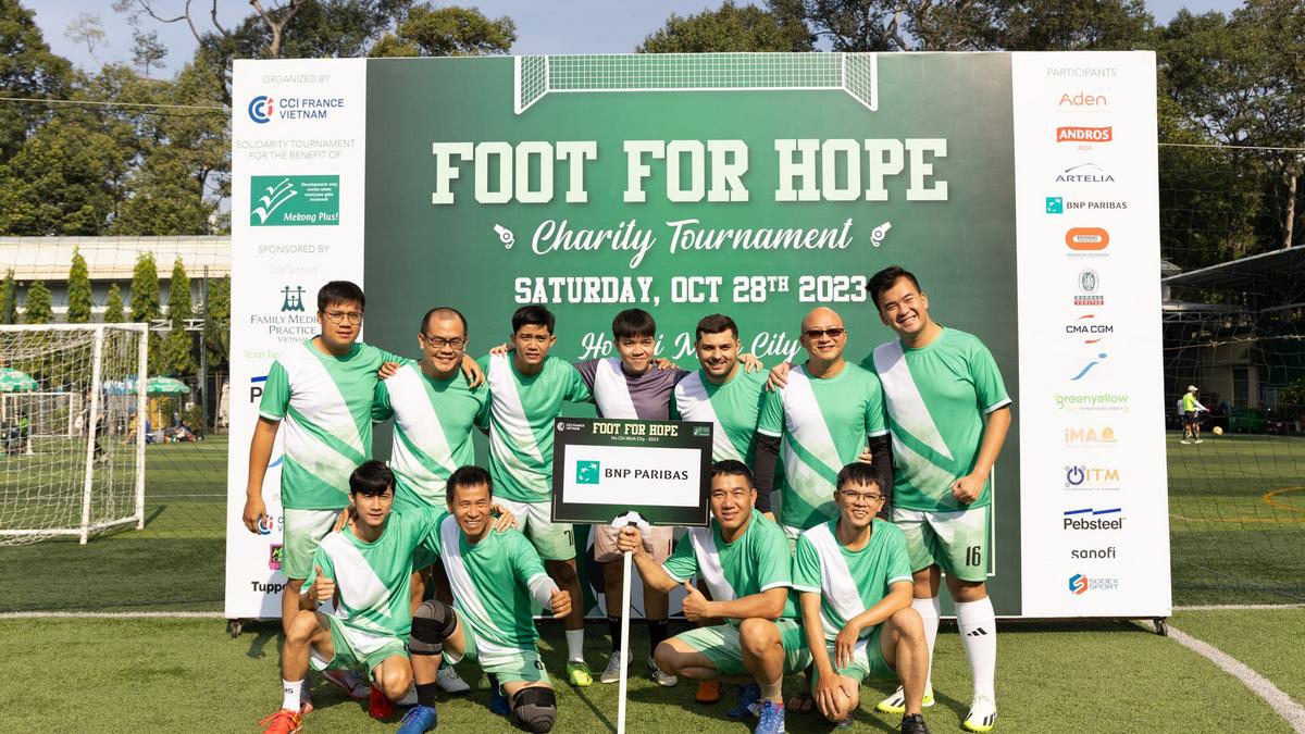 Le 28 octobre 2023, sur le terrain de football de Tao Dan, au cœur de Saigon, s'est déroulé le tournoi de football caritatif Foot for Hope, organisé par la Chambre de commerce et d'industrie française au Vietnam (CCIFV). Le tournoi s'est achevé avec succès avec la participation de 16 équipes et de nombreux supporters enthousiastes. Au milieu de la chaleur de Saigon, le terrain de football a été animé par des matchs acharnés et les acclamations passionnées et enthousiastes des supporters des 16 équipes. C’est finalement Pebsteel qui a brillamment remporté le prestigieux trophée, avec un score qui n'aurait pas pu être plus proche de celui de son dauphin Sanofi-Aventis, et Andros a été brillamment nommée à la troisième place du tournoi.