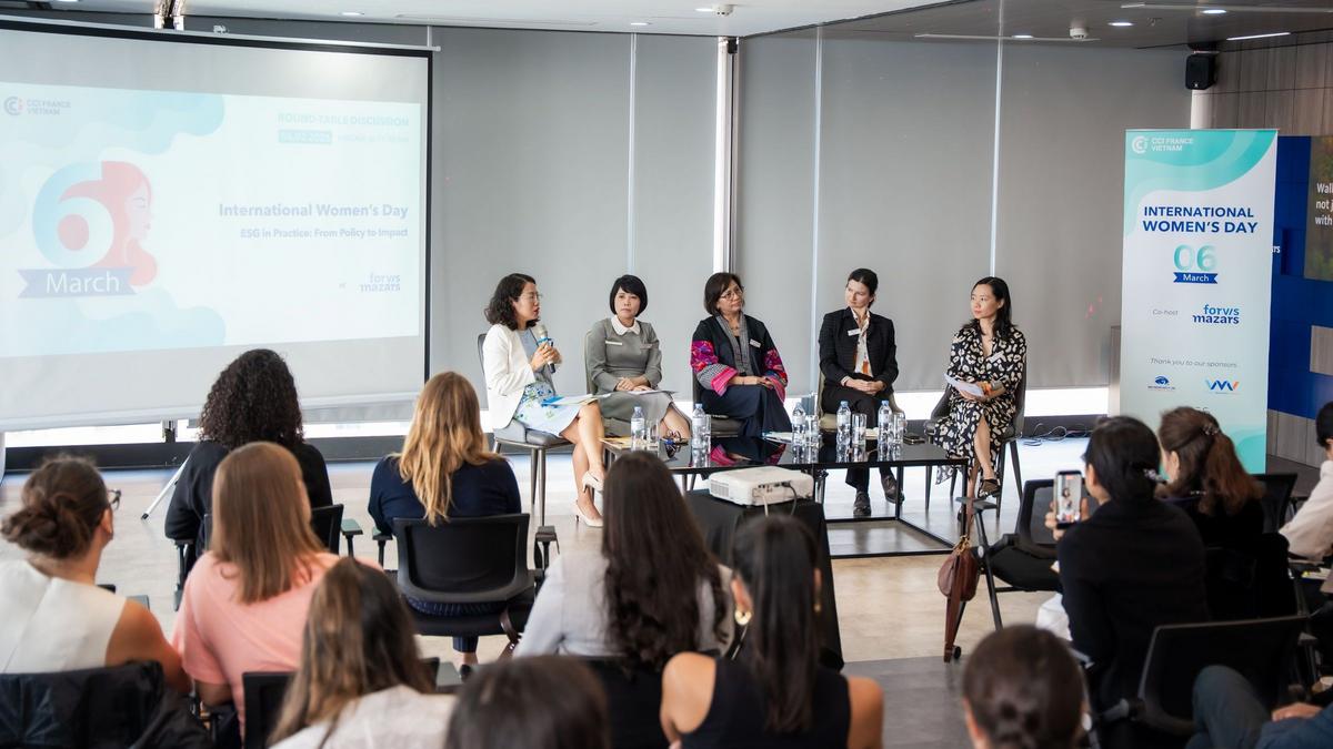 À l’occasion de la Journée internationale des droits des femmes, la CCIFV Hanoi a organisé une table ronde suivie d’un moment de networking le vendredi 6 mars, réunissant des experts et des professionnels afin d’échanger sur le rôle des femmes dans la mise en œuvre des initiatives environnementales, sociales et de gouvernance (ESG) au sein des organisations.