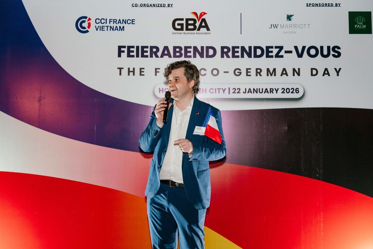 Le 22 janvier 2026, la German Business Association (GBA) et la Chambre de Commerce et d’Industrie France Vietnam (CCIFV) ont coorganisé deux événements de réseautage à Hanoï et à Hô Chi Minh-Ville pour célébrer la Journée franco-allemande, symbole fort de l’amitié et de la coopération entre la France et l’Allemagne.