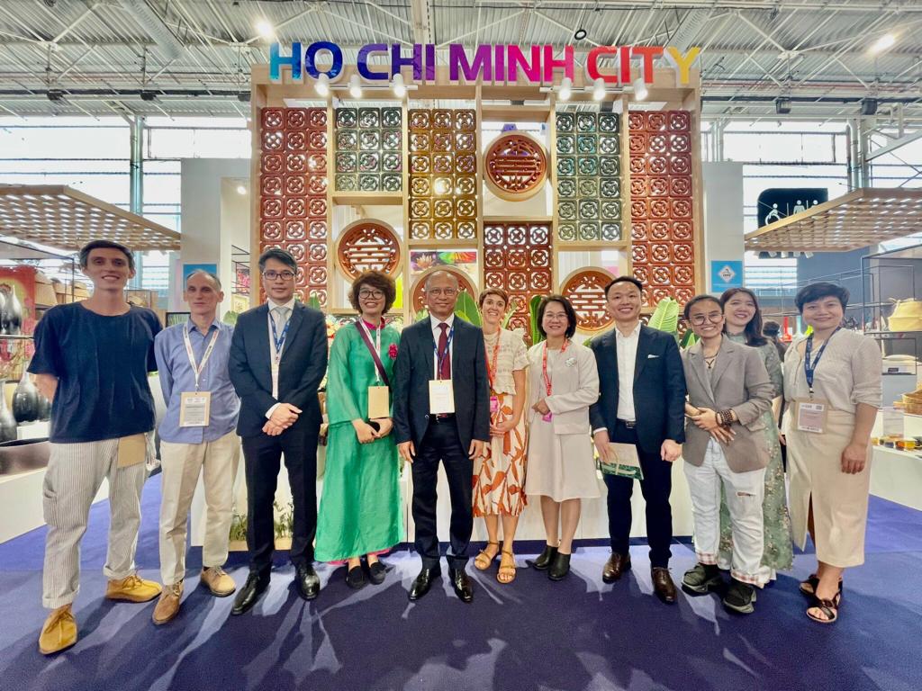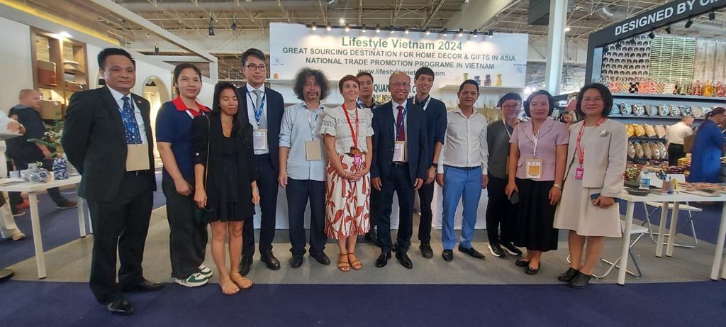La délégation vietnamienne accompagnée par la CCIFV était très présente à M&O cette année, avec deux grands pavillons installés dans le hall Unique&Eclectic du salon : le pavillon de la ville de Hô Chi Minh organisé par le Centre de Promotion commercial et d’Investissement (ITPC) d’une surface totale de 160m2, et celui de l’Association des Exportateurs des Produits artisanaux du Vietnam (Vietcraft) de 70m2. 31 entreprises ont présenté leurs produits et leur savoir-faire dans divers secteurs : céramique, rotin, laque, linge de maison, produits pour enfants, bougies parfumées, luminaires décoratifs et meubles.