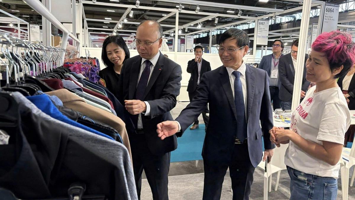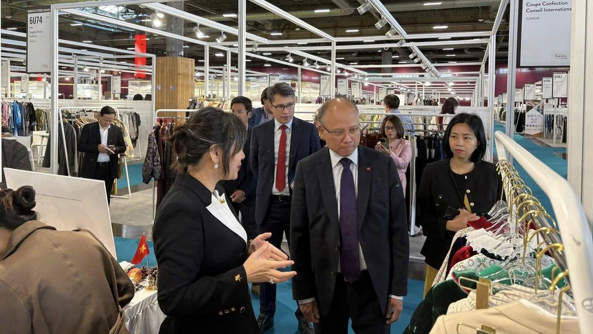 Son Excellence Dinh Toan Thang, Ambassadeur du Vietnam en France, accompagné du Conseiller commercial Vu Anh Son et de Yvan Dacquay, Directeur des ventes de Première Vision ont visité les stands vietnamiens. Tous ont souligné l’importance pour le Vietnam de participer à des salons internationaux de prestige tels que Première Vision Paris. Une présence régulière permettrait de consolider sa position sur un marché à la fois historique et porteur pour ses exportations.