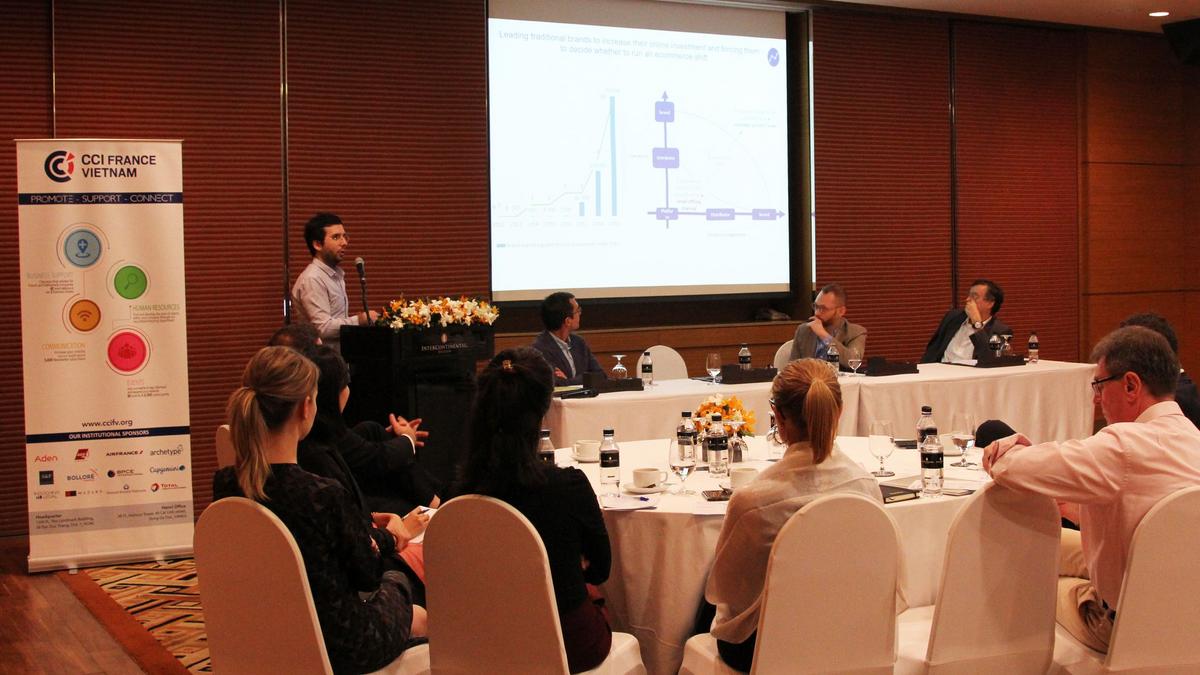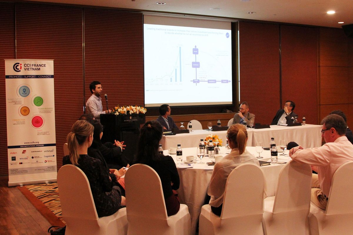 To these three challenges, Thibaut GIROUX, the CCIFV’s Chairman added the fourth aspect : the human resource issue, or how companies keep their employees loyal in a competitive business environment. Mr. GIROUX also pointed out the digital transformation in Vietnam which he considered « is coming twice as fast as we think ». The country now ranks 5th in the region in terms of Internet and Social media penetration, and the digital brings market disruption in the service industry and drives online consumption, according to Xavier DEPOUILLY, Founder of Indochina Research. In line with this opinion, David NOMBER, Founder of Customore. Co, underlined the fact that nowadays, leading traditional brands in Vietnam have to think of E-commerce as a strategic growth lever instead of a small online channel. French companies in Vietnam like Metiseko also implement mid & long term digital business strategies to enhance visibility and build consumer trust.