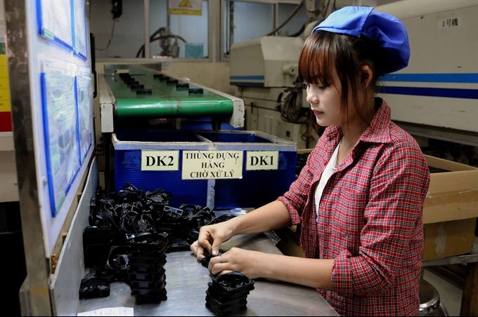 A worker classifies plastic parts at the Cát Thái Manufacturing & Trading Co Ltd, one of the leading companies in the part supplying industry in Việt Nam